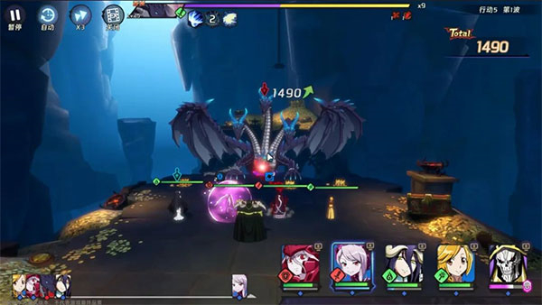 纳萨力克之王的战斗系统的底层采用的是回合制+卡牌游戏的玩法,在此基础上,角色有三个技能,分别是普攻,被动技能,主动技能,普攻无CD,主动技能有相应的cd,SR角色和SSR角色还拥有一个EX技能(大招),需要在技能系统中激活,每个技能释放带有不同的动画,同时每个角色又有相应的速度属性,体现在下方的行动条中。