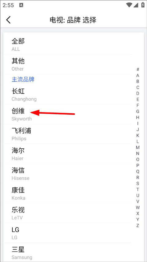 3、点击选取电视品牌,将遥控器加入列表;