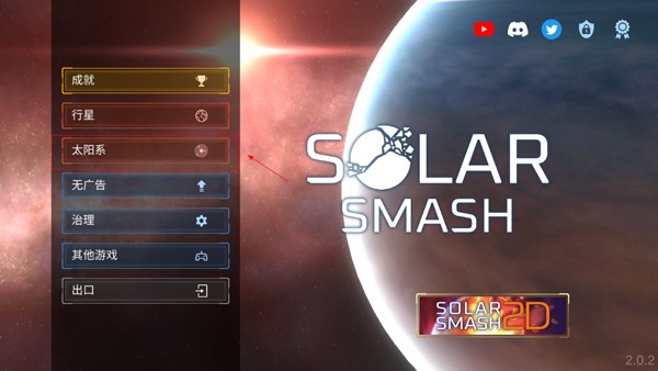 1、来到星球爆炸模拟器这款游戏主界面,点击左侧“太阳系”。
