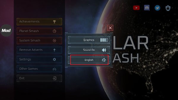 1、星球爆炸模拟器是一款非常有趣的破坏游戏,我们第一次启动这款游戏时,默认的语言设置是英文,然后点击Settings。