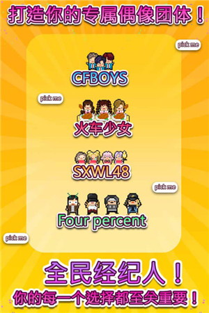 1、你可以亲手组建你喜欢的偶像团体,挑选最适合的练习生,为他们搭配最耀眼的舞台装扮,演唱会开遍世界,让他们成为最炙手可热的完美组合!
