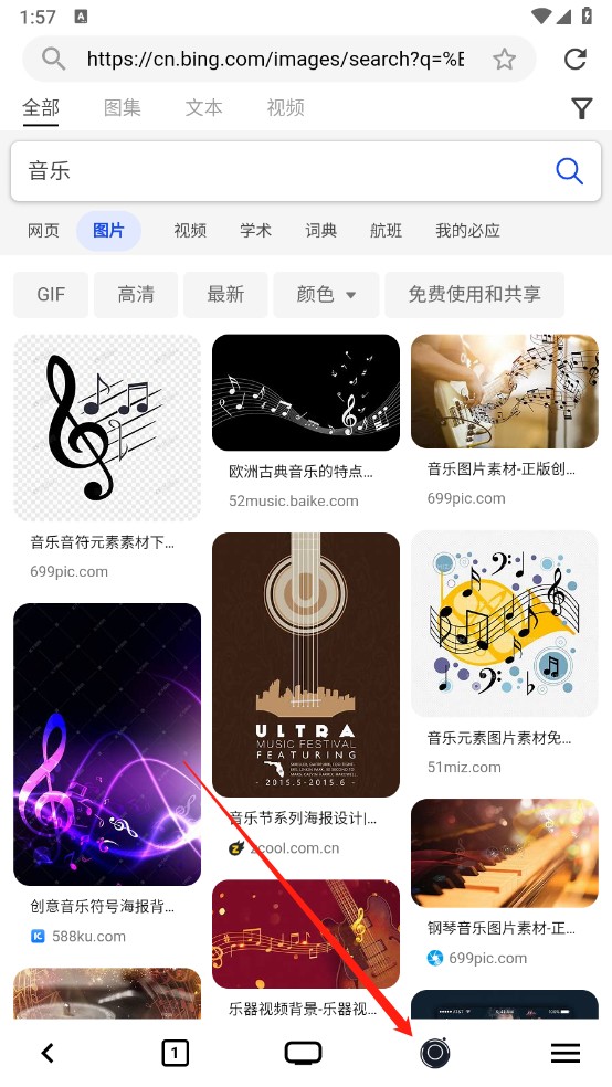 4、点击右下方的三个横杠标志,可以对网页进行收藏、加入书签等。