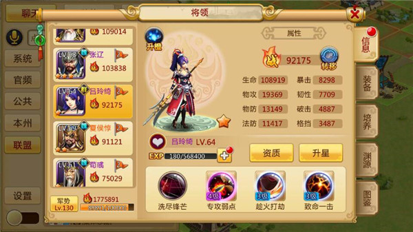 答 在将领面板可以查看全部将领的基础属性,点击【生命】、【韧性】、【破击】等文字即可查看该属性的作用。