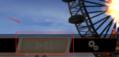 1、屏幕上是个游乐园,摩天轮着火了。下方有三个控制区,中间有播放键,右边能调设置,按提示看天空方向。