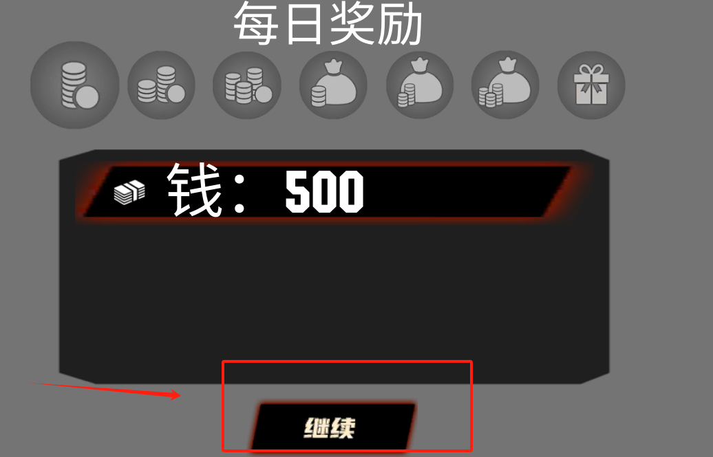 2、点继续领500金币奖励,界面有七个图标,选完直接按红色框住的按钮就行。