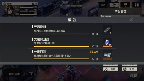 这关又有一次性炸到N个敌人的成就,不过这关有个可以逃课的方法:第一回合不要打破装有军需箱的物资车,等到第二回合的时候,再用火箭炮来轰炸,就正好能完成了。