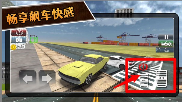 1.油门与刹车键:右侧“油门”和“刹车”按钮控制加速与减速漂移。