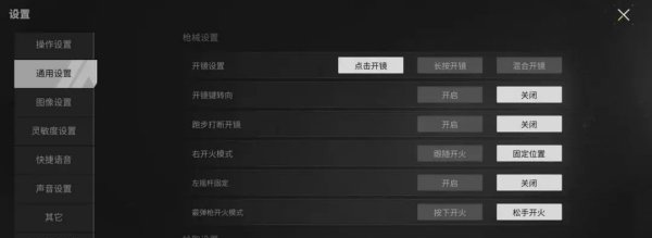 其他通用设置里建议关闭跑步打断开镜,灵敏度建议等10级了去靶场根据自己习惯调整。剩下的直接默认就好。