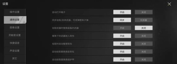 自动拾取要关闭拾取武器时替换武器和替换下武器放入背包的设置,防止让自己手忙脚乱。同时,开启自动拾取替换高级背包和护甲。