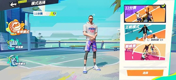 在一场快速的11分比赛中,您的球员拥有各种专业技能,例如3分投篮、边路拦网、扣篮等。每个球员都有自己独特的技能,快来创造自己的篮球高光时刻!
