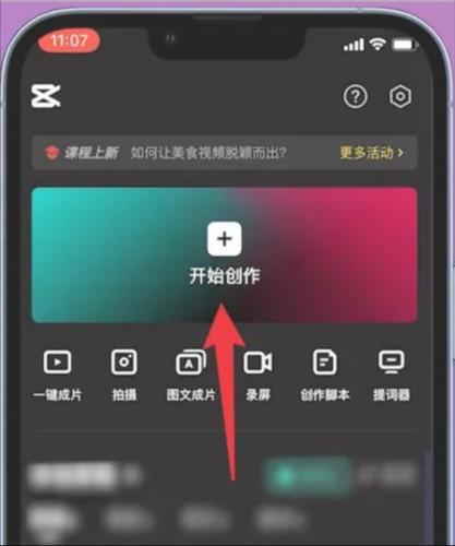 1首先在手机上打开剪映进入主页面,在页面上点击开始创作。
