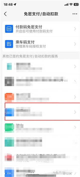 5、在免密支付/自动扣款的页面我们可以看到已经开通的服务,点击需要关闭的【剪映】软件;