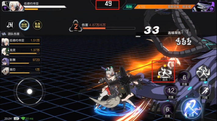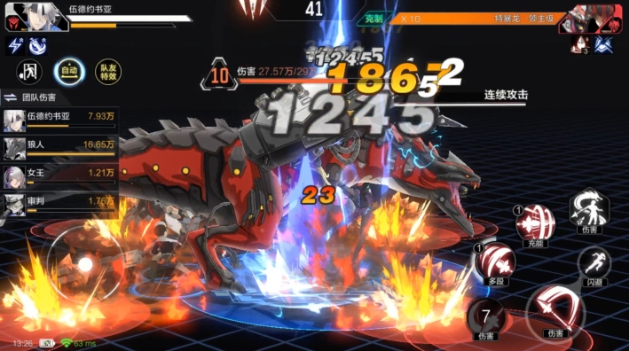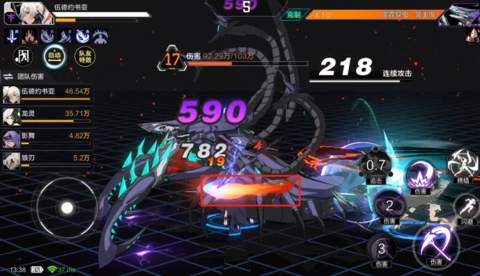 在测试过程中,我将龙灵和猎魔放在一组中测试,你会发现一开始龙灵的伤害量一直在猎魔之上,但是从入战后某个时刻开始,猎魔就突然开始反超甚至一直超过龙灵了。在之前其他的攻略中,我有提到过猎魔为何打伤害慢的原因。首先,猎魔的追击技能释放条件特殊,不是对手浮空了它的追击就能打,一定要通过打技能把【狩猎值】累计到3点之后才能释放。