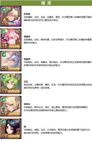 1、伊利亚:后排辅助,加攻、加血、加暴击,复活,作为精灵唯二的辅助有着不错的辅助能力的同时还可以复活友方单位。