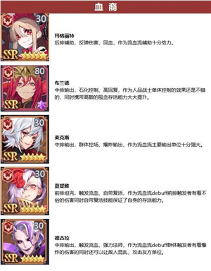 5、德古拉:中排输出,触发流血、强力法师,作为流血流debu群体触发者有着爆炸的伤害的同时还可以让敌人混乱,攻击友方单位。