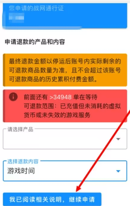 选择退款的【产品】和【退款内容】,点击【我已阅读相关内容,继续申请】。