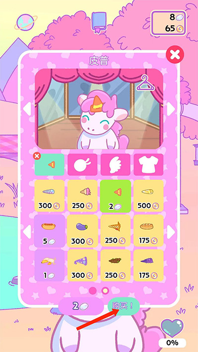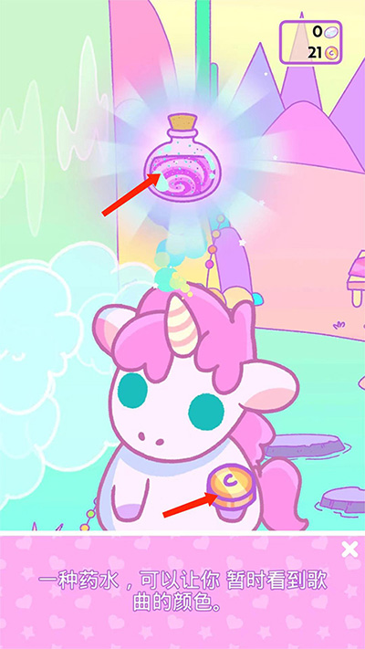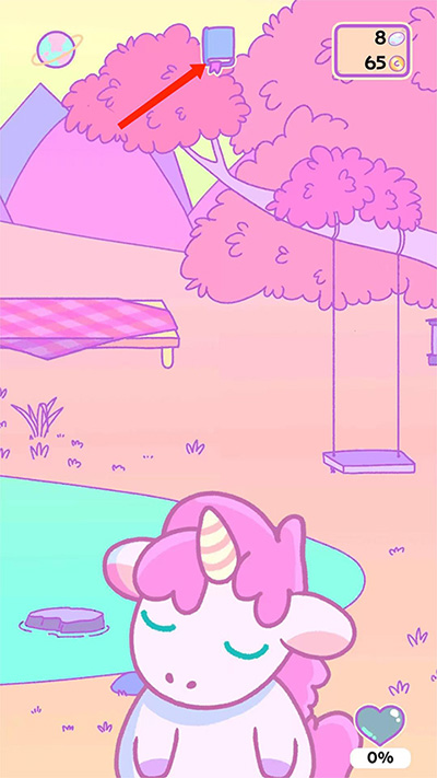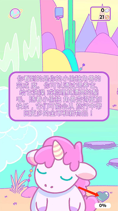 7、当独角兽在家时,可以通过款待(喂食)、洗澡和宠爱(刷毛)这三种方式来提升与独角兽的好感度,从而在寻宝过程中获得金币和新物品。每次寻宝归来后,好感度会重新归零。
