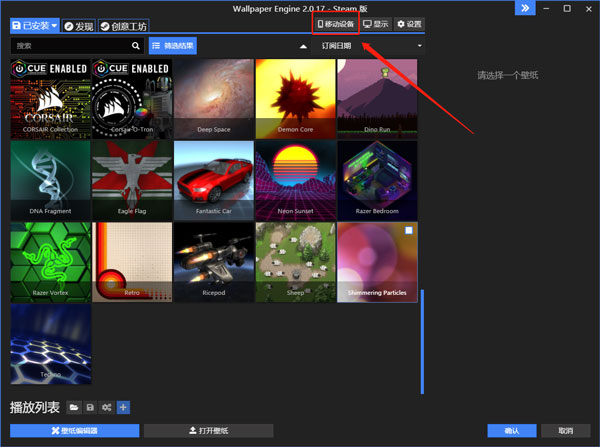 2、将场景和视频类型的壁纸从您计算机上的 Wallpaper Engine 无线传输到 Android。