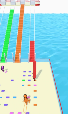 《一起来搭桥》(BridgeRace)是一款以清新卡通风格为主题的io竞速游戏。在游戏中,你可以收集各种颜色的模板来铺设桥梁,并与他人竞争看谁能最快完成桥梁铺设并率先到达终点。游戏操作既有趣又简单,容易上手。玩家需要在场景中覆盖其他玩家的桥梁,玩法轻松且充满乐趣,提供了非常有趣的体验。这款游戏结合了不同的游戏类型,你将随机匹配其他玩家一同参与游戏。你需要充分利用木板不断建造桥梁,根据平台数量获取足够的木板,逐步向终点前进。