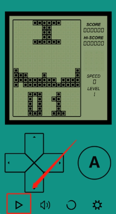 2、“俄罗斯方块”的游戏界面如下图所示,点击下方的三角箭头即可进入游戏。