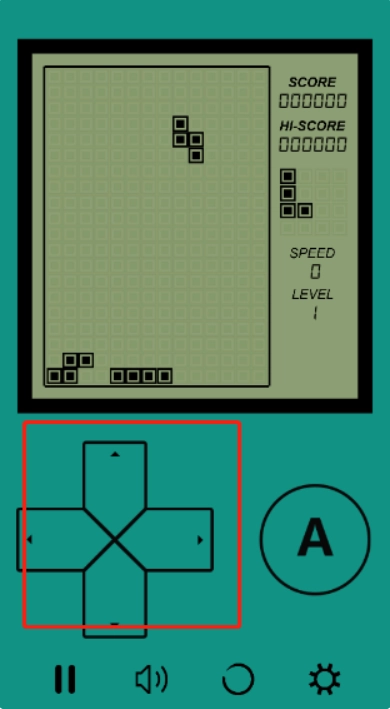 3、游戏内可单独使用方向键操作,上键可切换方块方向、下键控制方块快速下落、左右键控制方块移动,而旁边的“A”键与上键功能一致,皆为控制方块切换方向。