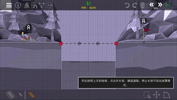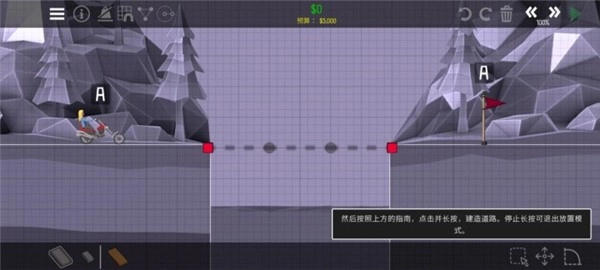 3、玩家初次进入游玩时,可以根据新手教学引导建造基本的桥梁。
