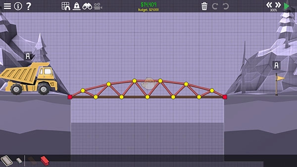 保利桥2手机版呈现充满趣味的桥梁建造游戏。游戏里,玩家要依据关卡要求,以最少预算搭建结构稳固的桥梁,尽情自由发挥,探寻各类有意思的桥梁设计。