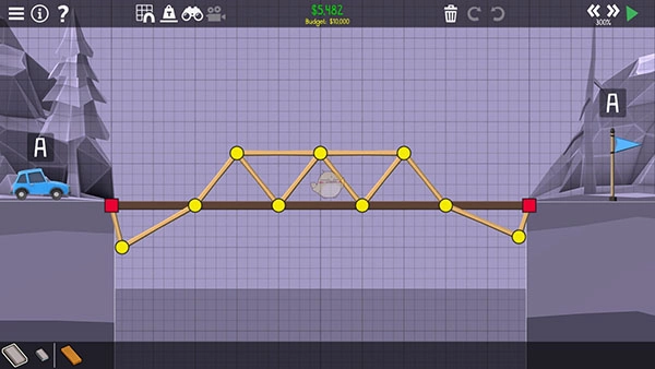 3、全新物理效果:游戏为玩家构建了一个可自定义的物理引擎,对桥梁的物理细节加以优化,使玩家能够更精准地打造属于自己的桥梁。