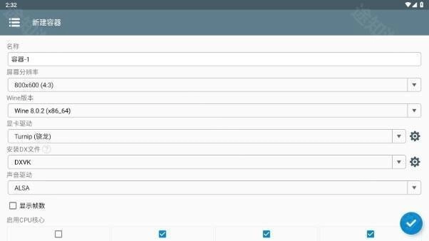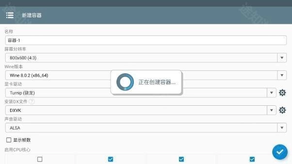 4、参数设置完成后,点击右下角的“√”来创建容器。