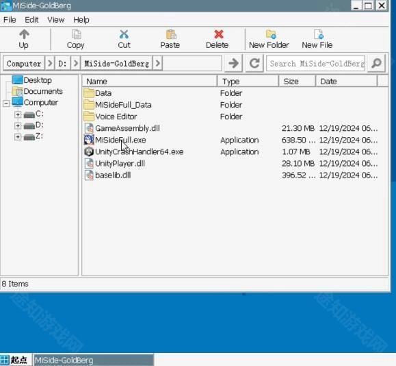 10、双击MiSideGoldBerg文件夹进入其中,找到MisideFull.exe程序,再次双击即可打开。(需注意:此版本为模拟器版本,兼容性欠佳。部分手机打开时会弹出错误提示,无法进入游戏画面。遇到这种情况,可尝试对容器参数进行调整。若调整参数后仍提示出错,那就只能等待优化版本发布更新了!)