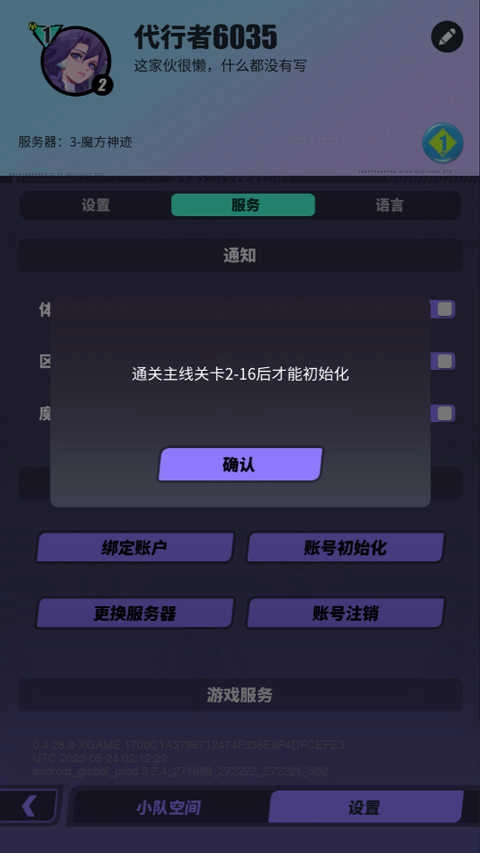 4、最终,玩家成功通过主线2 - 16关卡后,就能重置角色账号。
