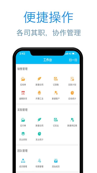 5、支持团队协作功能,可设置不同权限角色,实现财务数据的共享与协同管理。