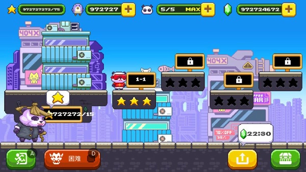 《超能熊猫侠》手机游戏,以像素风格打造横版动作冒险玩法。玩家在游戏里操控四只熊猫侠,穿梭于城市、雪山等多元场景之间。通过灵活跳跃、巧妙躲避陷阱,收集启明星,进而解锁全新关卡。游戏独具复古8-bit画风,色彩设计层次丰富,既充满怀旧韵味,又能带来现代的视觉享受。它还支持全球玩家在成就与关卡设计方面展开比拼,无疑是喜爱平台跳跃与创意挑战玩家的优质之选。
