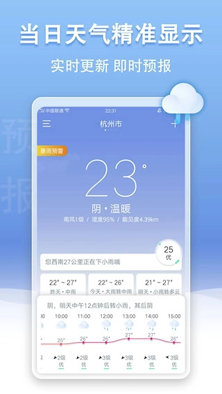 即时天气提供的气象信息服务精准且实时。它的数据源自权威气象机构,能实现对全球300多万个城市与地区未来十日天气预报的全面覆盖。其具备的分钟级降水预报功能,可精准告知未来几小时特定区域雨雪的起始与结束时间,同时还提供24小时温度变化曲线,助力人们合理规划外出活动。