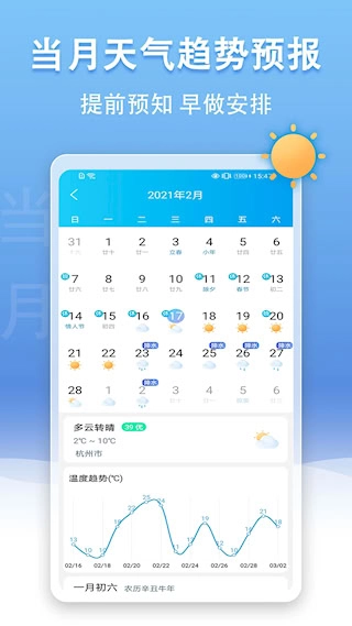 2、将精准天气预报、环境监测、生活指数、日历工具等多种功能集于一身,满足多元化需求。