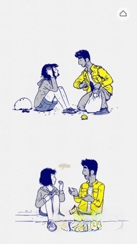 以移动贴纸拼图的方式完成画面,再对钟表进行调整,以此展现女生的回忆。随着剧情逐步推进,女孩在公园与拉小提琴的男孩不期而遇,就此,这段初恋的心动瞬间拉开了帷幕。