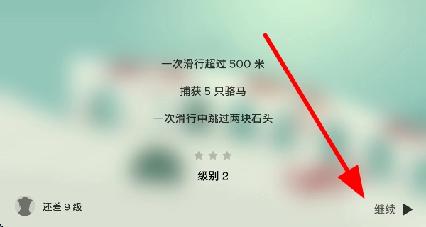 4、在游戏失败或通过后,关卡总结一次滑行超过500米、捕获5只骆马等,点击继续,推进游戏下一关。
