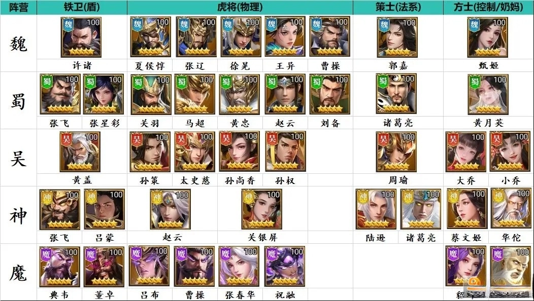 蜀吴群秒阵容:魏·许诸、吴·周瑜、蜀·马超、神·蔡文姬/神华佗、任意魔