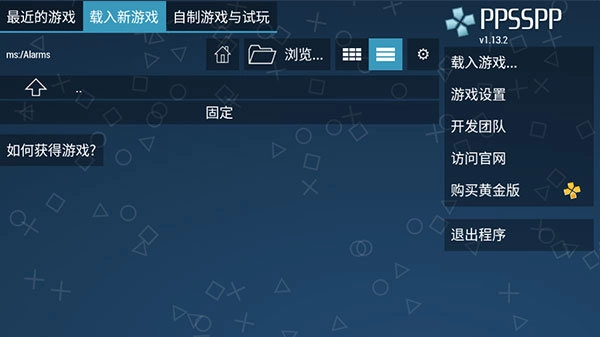 2. 在安卓手机上安装ppsspp模拟器,安装完成后点击图标进入ppsspp模拟器。接着找到存放游戏的文件夹,默认路径是在sdcard,如此便能看到存放在psp文件夹里的游戏镜像。在开始游戏之前,需要先对模拟器进行设置,本教程的设置是针对低配置手机的,高配手机可依据实际情况对某些选项进行适当修改。具体操作是点击“游戏设置” 。