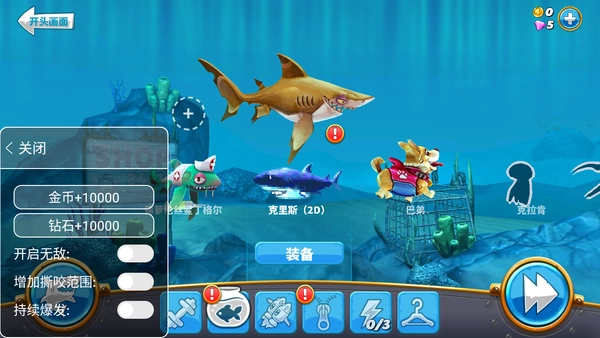 提升你的鲨鱼,为其配备超酷炫的装备,让它咬合更有力、游动更迅猛,变得愈发贪婪!每一条蓄势待发的鲨鱼都需要耳机、雨伞以及超炫的喷射背包!