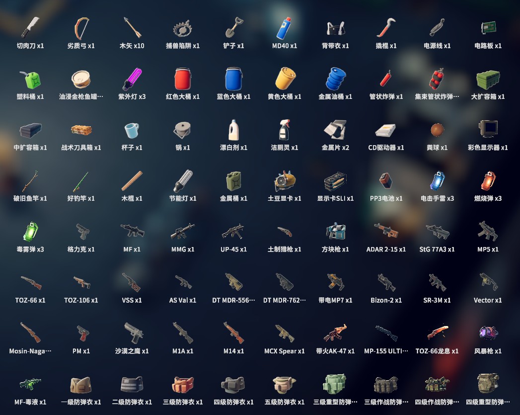 在地图上搜刮的道具可以制作出强大的武器,变废为宝,武装鸭鸭武装自己!