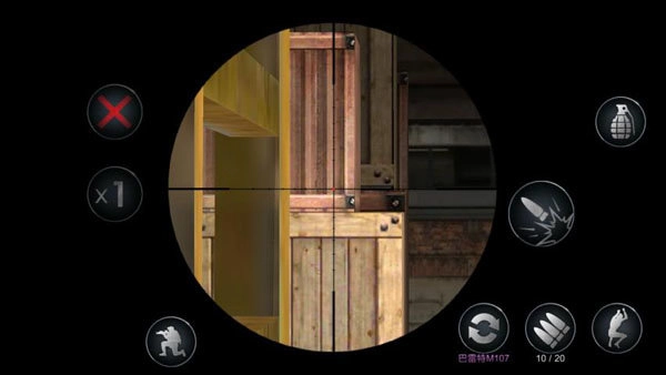 3、玩家在使用狙击枪时大致操作位置相同,在点击射击按钮后进入开镜模式,开镜模式下右侧会显示开镜的倍数和退出开镜模式的按钮。同时普通模式的按钮全部保存,玩家可以随心所欲的操作。