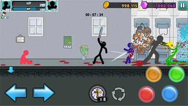 在团队战斗中,最多可以出现四个火柴人角色,同时我们还可以对火柴人不断的升级,超过600个等级,200种不同的敌人和层出不穷的大BOSS,在等待着大家的挑战,可玩性极高。