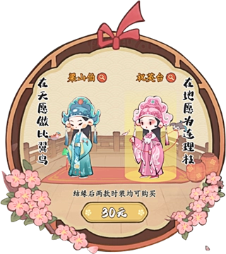比翼双飞,结缘后你还可购买“梁山伯”/“祝英台”结缘限定时装!