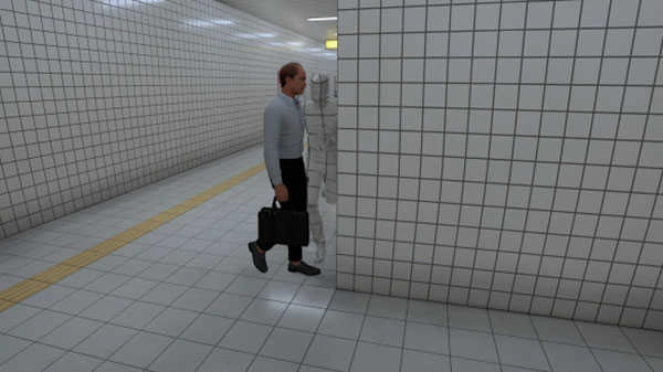 前方有一位自顾自往前走,看不见你,面无表情的大叔。