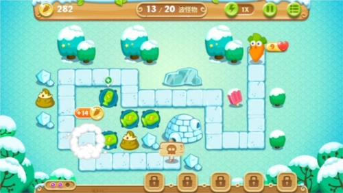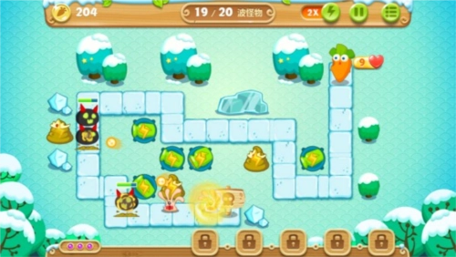 2、经典的游戏玩法轻松体验,玩家通过放置各种道具来保卫自己的萝卜。