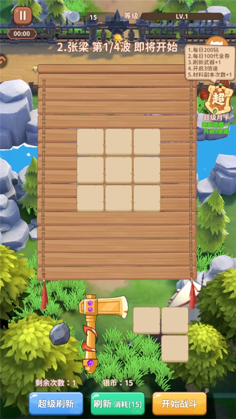 1. 在蜀道轮回游戏战斗开启之前,玩家能够挑选武器以及格子。