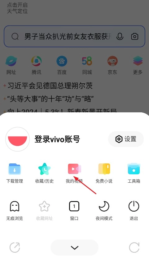 1、第一步,打开vivo浏览器,点击屏幕下方的功能【菜单】按钮。