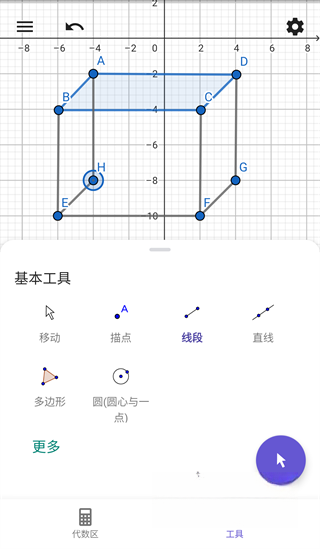 1. 开启Geogebra软件,随后点击软件里的【多边形】工具,紧接着在操作界面执行绘制动作。