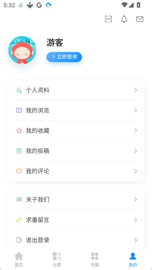 4、点击我的可以进行登录、收藏或查看我的浏览